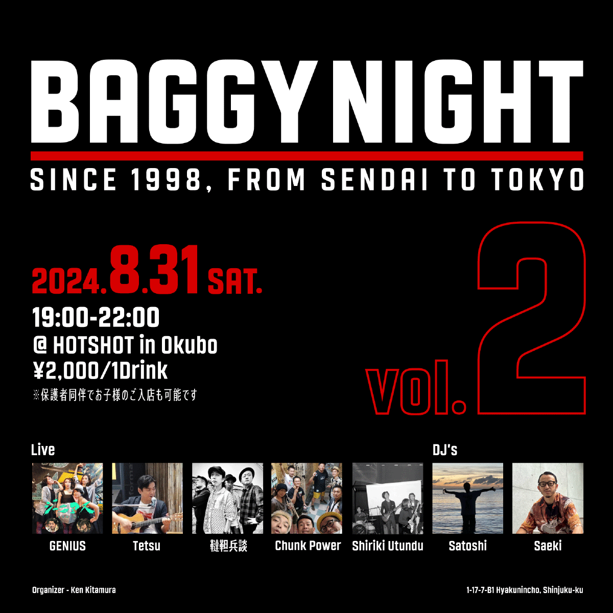 24.8.31 SAT @ HOTSHOT in Okubo ジーニアス出演いたします。